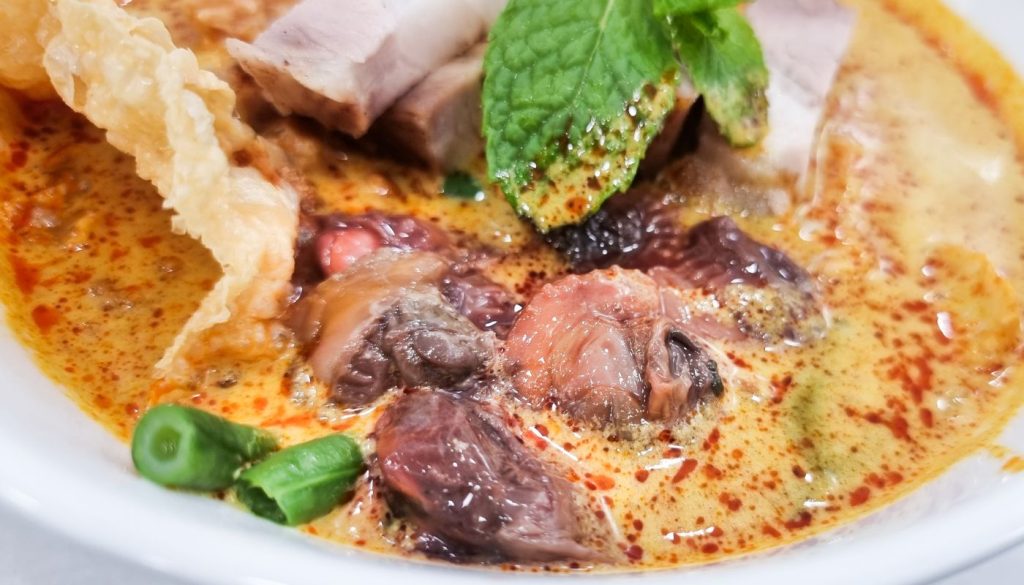 Walaupun bahan untuk kuahnya serupa dengan asam laksa — ikan kembung, santan, asam jawa, serai, dan bawang kecil — kuahnya tidak mengandungi pes kari, memberikan rasa sedikit manis dan berherba. Untuk benar-benar menghargai hidangan ini, ada yang mengatakan mi ini sebaiknya dimakan dengan tangan seperti cara orang tempatan menikmati hidangan tersebut, menurut The Star.