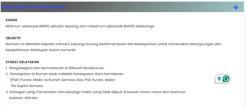 Kriteria Kelayakan Bantuan Am Persekutuan