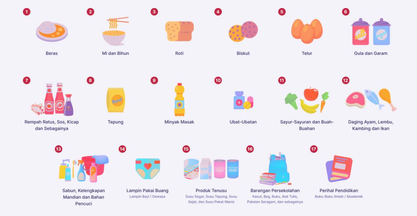 Hanya jenis barangan yang tersenarai di bawah diluluskan untuk pembelian menerusi program BINGKAS.