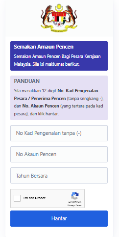 - No. Akaun Pencen – Pastikan nombor akaun pencen anda betul.