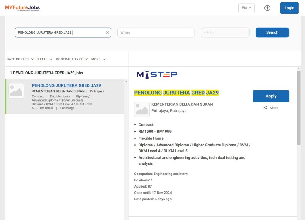 - Layari laman web https://candidates.myfuturejobs.gov.my/