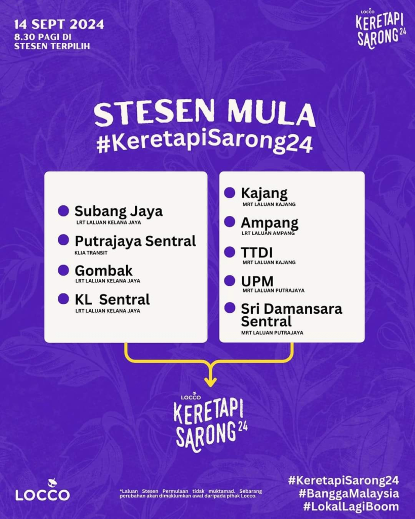Keretapi Sarong 2024 akan berlangsung pada 14 September 2024 di suatu lokasi ‘rahsia’.