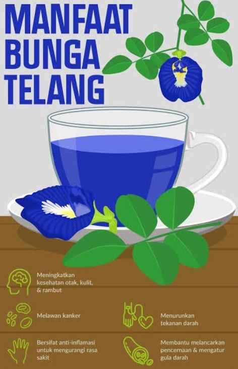Selain melebat dan menghitamkan rambut, daun dan bunga telang juga dikatakan mampu mengurangkan sakit kepala.