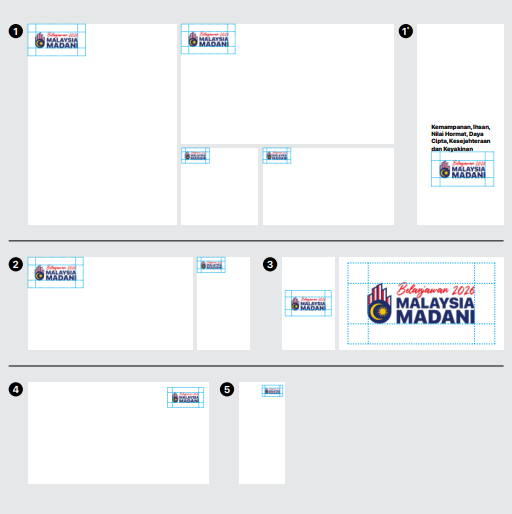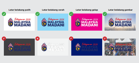 - Untuk Risalah Kempen, Video, dan Brosur: Logo perlu diletakkan dengan jelas pada ruang yang mudah dilihat.