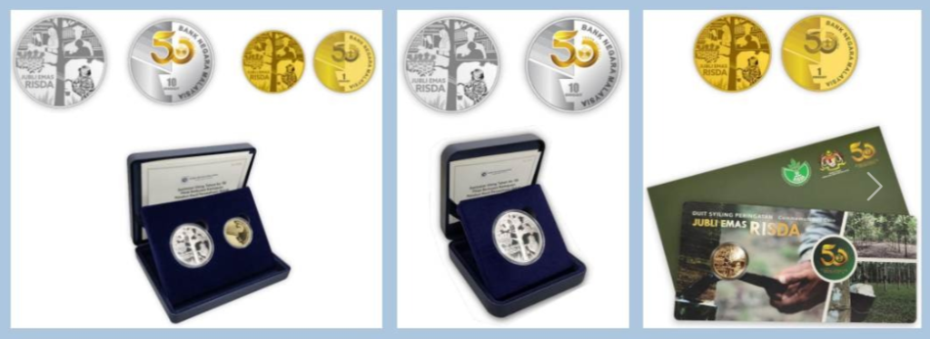Syiling peringatan untuk RISDA dan MCDR juga diperbuat daripada perak sterling dengan ketulenan 92.5 peratus dan berat 31 gram setiap satu. Setiap syiling ini mempunyai nilai muka RM10 dan akan dijual pada harga RM330 sekeping. Kuantiti tempaan bagi setiap reka bentuk adalah sebanyak 1,000 keping.