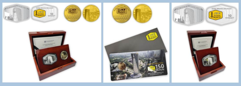 Bank Negara Malaysia (BNM) hari ini mengumumkan pengeluaran tiga syiling peringatan istimewa bagi meraikan ulang tahun ke-150 Jabatan Kerja Raya (JKR), ulang tahun ke-50 Pihak Berkuasa Kemajuan Pekebun Kecil Perusahaan Getah (RISDA), dan ulang tahun ke-50 Hubungan Diplomatik Malaysia-China (MCDR).