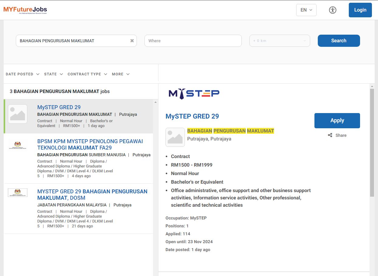 - Layari laman web https://candidates.myfuturejobs.gov.my/