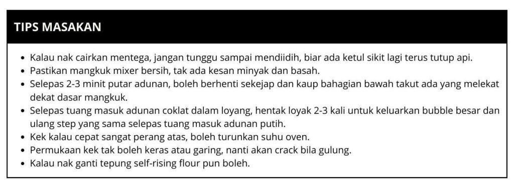 - Tuang adunan coklat dalam loyang, ratakan dan tuang pulak adunan putih.