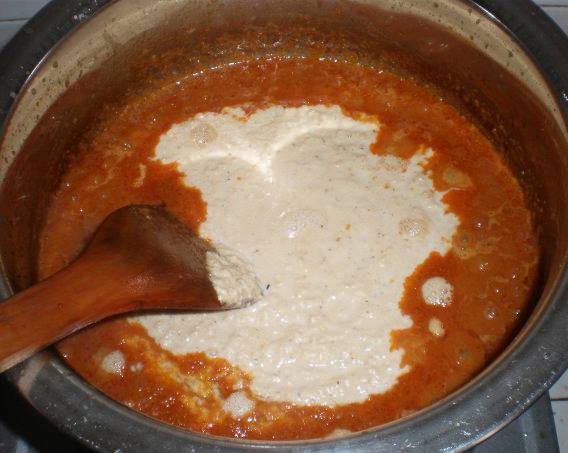 - Masukkan udang yang dah kisar halus dan gaul sampai sebati.
