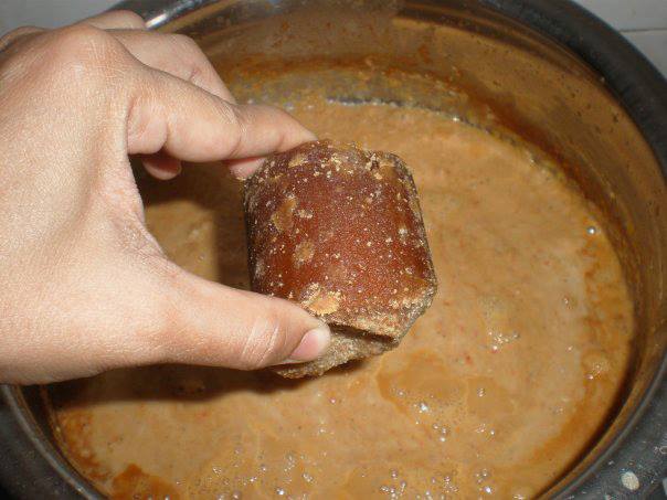 - Masukkan gula Melaka.