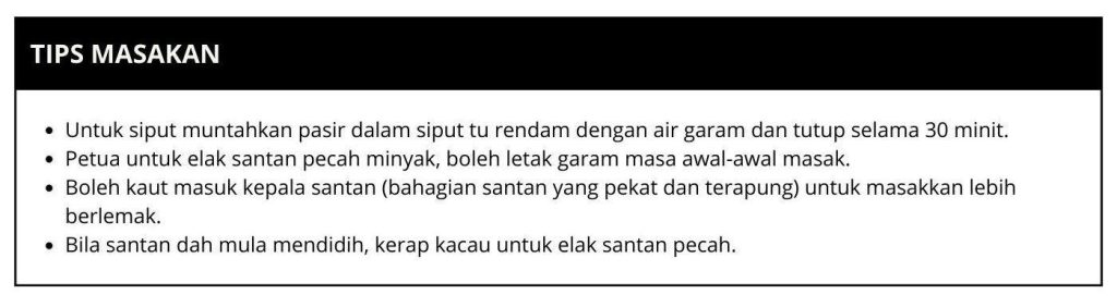 - Untuk masakkan lebih berlemak, boleh kaut masuk kepala santan (bahagian santan yang pekat dan terapung).