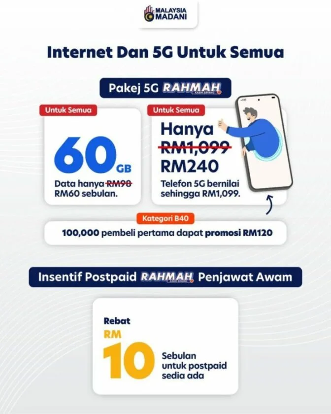 TERKINI: Pakej 5G RAHMAH Bermula 31 0gos 2023 ! (Bantuan Data Internet 60GB & Telefon Pintar Serendah RM240)