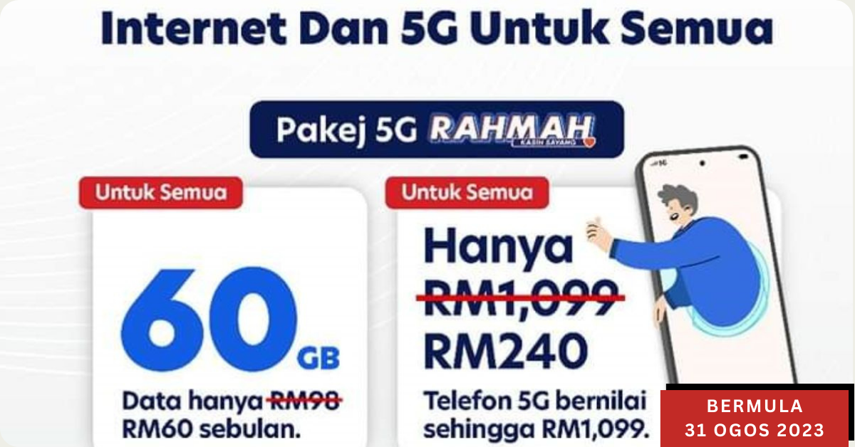 TERKINI: Pakej 5G RAHMAH Bermula 31 0gos 2023 ! (Bantuan Data Internet 60GB & Telefon Pintar Serendah RM240)