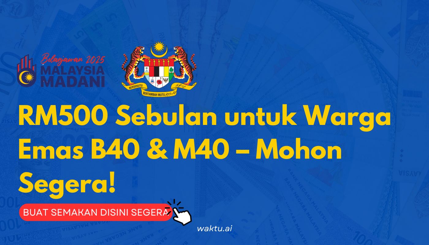 Anda berpeluang menerima RM500 sebulan sebagai bantuan kewangan kerajaan khusus untuk warga emas B40 dan M40. Baca artikel ini sehingga habis untuk mengetahui proses permohonan dan cara menyemak status. Jangan lepaskan peluang ini untuk menambah baik kewangan anda. Mohon segera sebelum terlepas peluang!